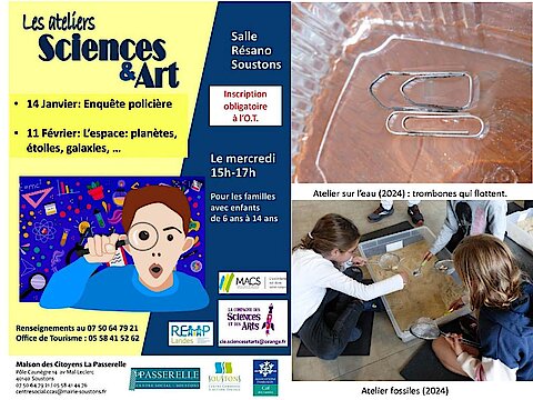 Les ateliers « Sciences et Arts » sont organisés par « La Compagnie des Sciences et des Arts » et « La Passerelle Maison des Citoyens de Soustons ».