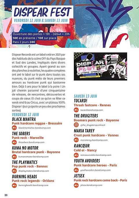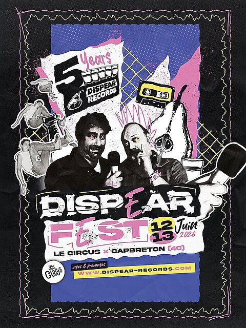Rendez-vous les vendredi 12 et samedi 13 juin au Circus (Capbreton), pour fêter les 5 ans du label à la poire, avec un plateau 100% Dispear !! 💀🍐