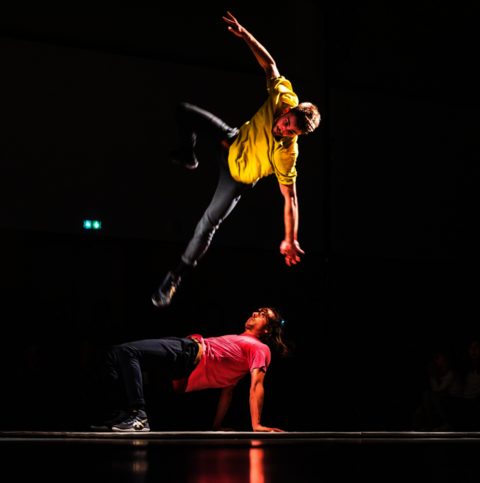 Dans un espace de jeu restreint, deux acrobates cherchent des solutions pour parvenir à l’harmonie. Les corps se rencontrent et s’entremêlent… Porteur et voltigeur se confondent et se confrontent avec complicité et humour.