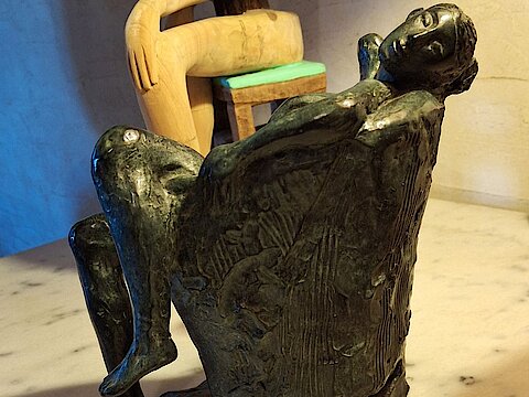 Un plaisir d’accueillir pour la première fois Jacques Lasserre, sculpteur landais natif, enraciné, souvent montré et célébré en ses terres, et reconnu bien au-delà pour la qualité et le rythme quasi musical de ses formes. Retour sur son œuvre, du Légionnaire romain de la Fontaine de Dax, aux nus endiablés, en passant par de sages totems, animaux sobres et puissants.