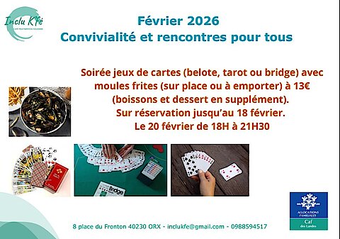 Inclu K'Fé animations du mois de février : Soirée jeux de cartes avec moules & frites
