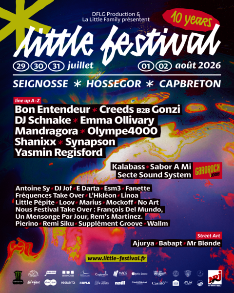 Le Little Festival 2026 aura lieu du 29 juillet au 02 août sur les communes de Hossegor, Seignosse et Capbreton.