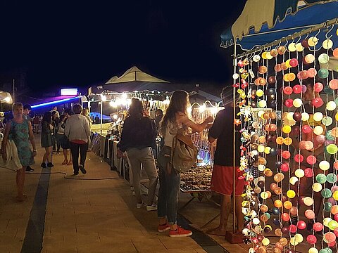 Le marché nocturne de Seignosse Océan se déroule chaque samedi soir en juillet et août, sur le quartier du Penon.
