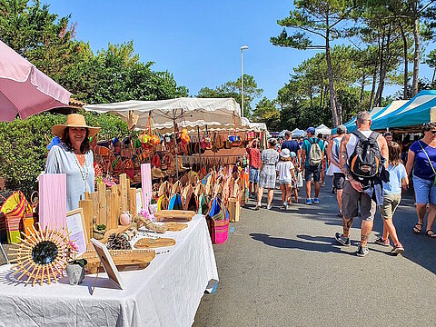 Situé près de l’Office de Tourisme, sous l’ombre des pins, ce marché accueille plus de 200 commerçants en plein cœur de l’été.