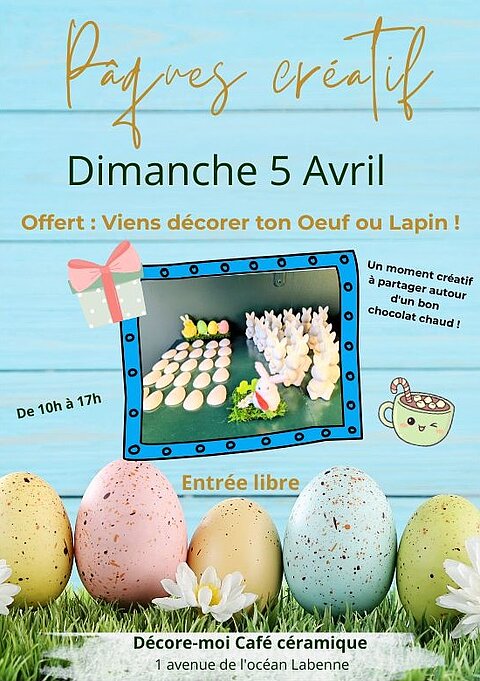 Viens décorer ton oeuf ou ton lapin ! Un moment créatif à partager autour d'un bon chocolat chaud.