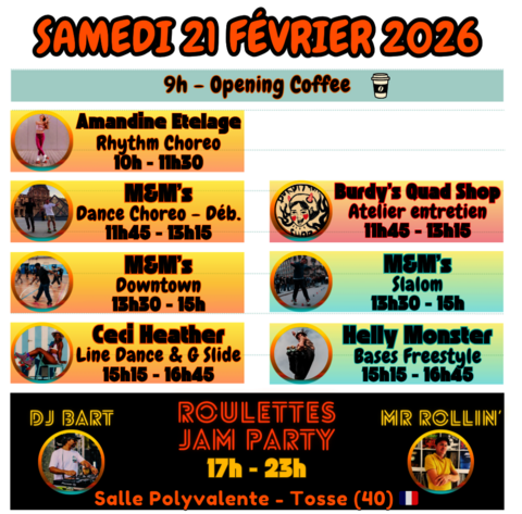 Organisé par l’association Roulettes, le Roulettes Jam Fest a pour ambition de rassembler des passionnés pour explorer la pratique du roller quad sous de nombreuses formes: roller dance, freestyle, slalom et saut dans une ambiance festive et inclusive.