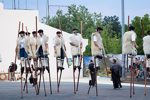 - Un spectacle qui vous plongera dans les valeurs et les traditions locales : sur le fronton (aire de jeu) à 21h le folklore landais avec les fameux échassiers suivi d'une partie de pelote à grand chistéra à 22h. Payant.