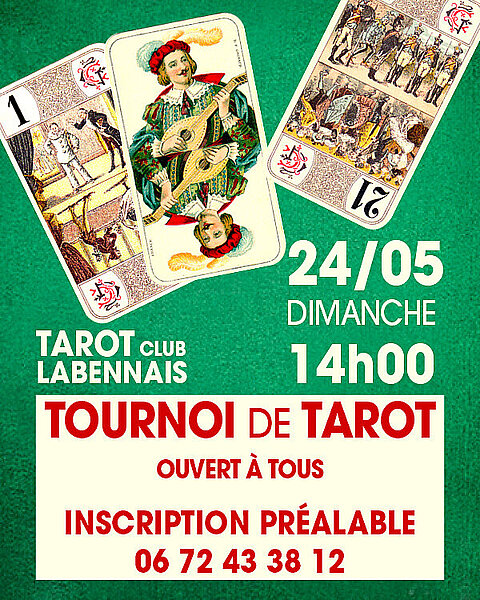 Tournoi de tarot ouvert à tous, sur inscription préalable au 06.72.43.38.12