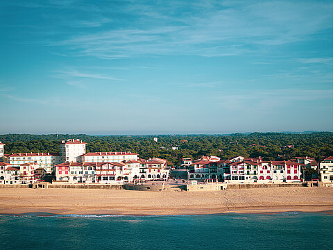 Explorez aussi son architecture basco-landaise : façades blanches, colombages colorés, toitures en pente et ouvertures tournées vers la lumière. Au-delà de son esthétique, la place est un lieu de vie animé, marqué par les saisons et les rencontres. Une visite complète entre patrimoine et art de vivre.
