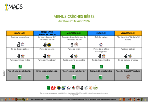 Les menus proposés par le Pôle Culinaire de MACS