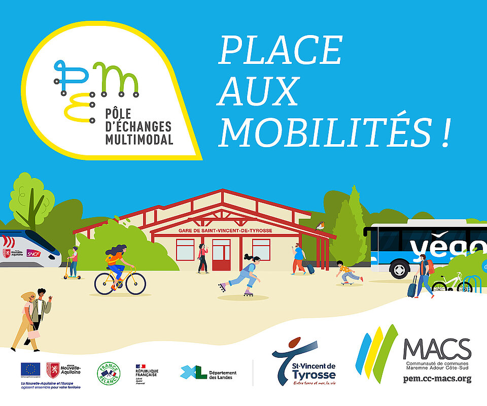 Le projet du PEM de Saint-Vincent-de-Tyrosse bénéficie du soutien de plusieurs partenaires techniques et financiers : la commune de Saint-Vincent-de-Tyrosse, l’État, la Région Nouvelle-Aquitaine, le Département des Landes, SNCF Gares et Connexions. L'aménagement du parvis du pôle d'échange multimodal a été soutenu par l'Union européenne.
