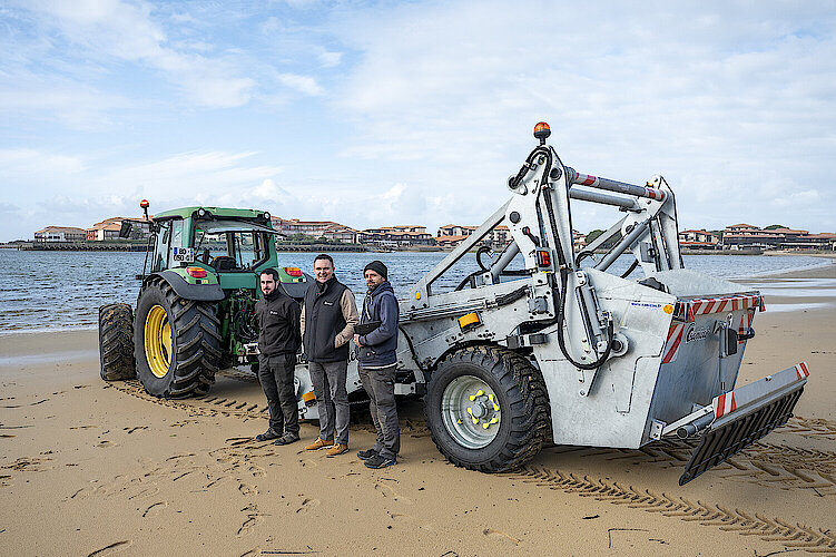 Fabriquer des machines permettant de nettoyer le sable, que l’on appelle des « cribleuses ». Ces matériels, dont la profondeur d’action varie entre 5 et 15 cm, sont attelés à un tracteur. Le sable est récupéré puis criblé sur un tapis vibrant avant d’être rejeté sur la plage et les déchets sont récupérés dans un bac. Nos cribleuses performantes nettoient entre 20 000m2 et 30 000 m2 à l’heure, débarrassent nos plages et notre littoral de déchets aussi petits que des larmes de sirène (ces granulés de plastique qui sont une véritable catastrophe environnementale). L’usage de ces machines est essentiellement réservé au nettoyage des plages, mais aussi pour retirer les plantes envahissantes dans les maraîchages. Les champs de courses hippiques font aussi appel à nous, pour préserver les chevaux des pierres et autres débris dangereux. Notre matériel est fiable, puisqu’une machine bien entretenue a une durée de vie de plus de 20 ans. En termes de débouchés, notre C.A. est réalisé pour la moitié en France et l’autre moitié à l’étranger. Nos clients sont principalement des communes et des revendeurs de matériel agricole, de matériel de nettoyage ou de BTP.