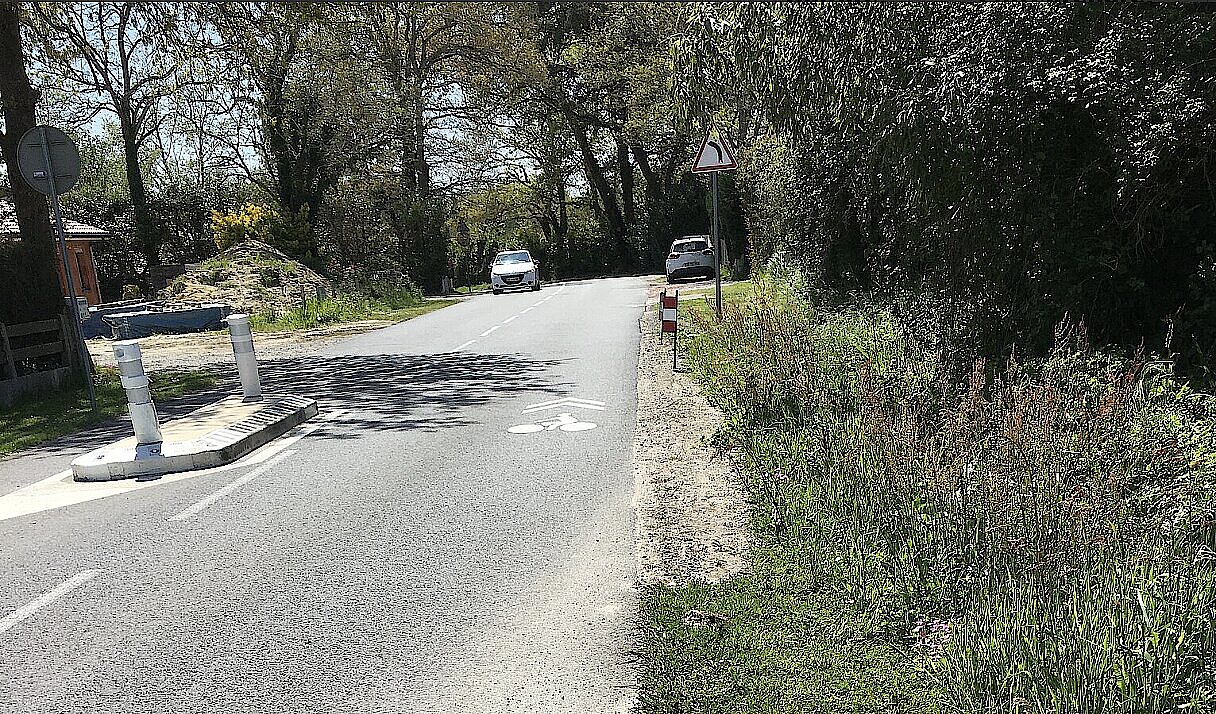 Aménagement de la rue d’Amaniou, de l’allée des Sports et liaison cyclable vers arrêt bus. La voie actuelle était une voie d’environ 6 m de large bordée d’accotements enherbés et ponctuellement de grave. Il n’existait ni trottoir ni voie cyclable.