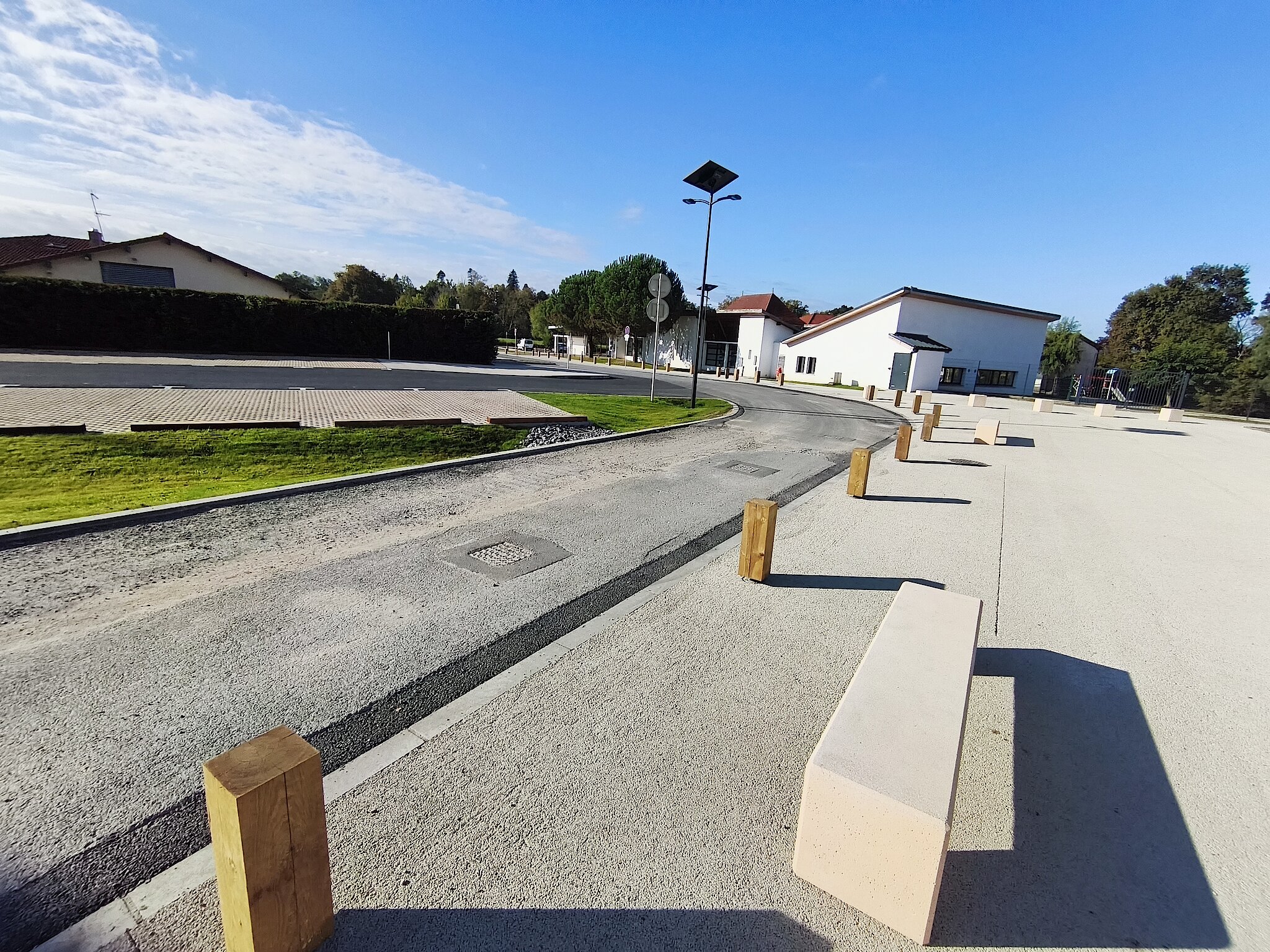 De juillet à septembre, MACS et la commune ont mené un chantier pour repenser les abords de l’école, de la crèche et de la salle polyvalente. Objectif : rendre les trajets des enfants, parents et riverains plus sûrs et plus agréables.